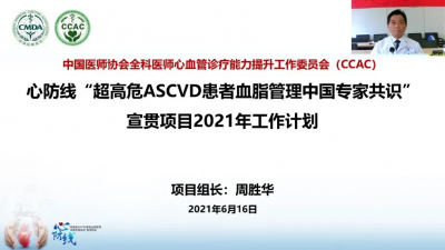 随后,CCAC“全心提升”项目组长马长生教授、“实战王”训练营项目组长陈绍良教授、“CTOINARMS”项目组长荆全民教授、复杂心律失常进阶培训项目组长王祖禄教授、心血管健康科普大讲堂项目组长董建增教授、心防线“超高危ASCVD患者血脂管理中国专家共识”宣贯项目组长周胜华教授分别就各项目2021年项目宗旨、活动规划、日程安排等做了详尽介绍。